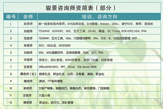 蘇州駿景企業(yè)管理咨詢有限公司部分講師清單
