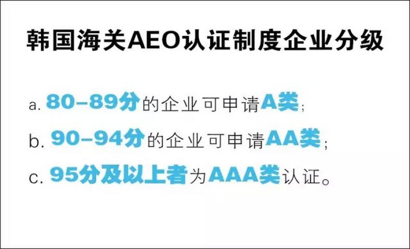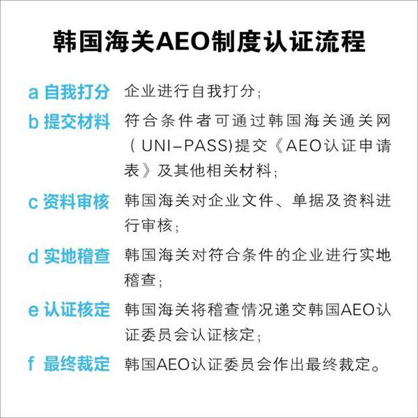 盡管如此,在AEO制度方面,韓國海關仍有一些做法與我國海關有所不同。具體來看,所有企業在申請AEO資格前,必須確定至少一名AEO專職管理人員(需提前接受不少于16小時的AEO專業培訓),以協助海關進行單據資料審核和現場稽查工作;一旦認證合規,企業必須承諾嚴格有效的后續管理,必須任命一名AEO總監和一名以上的AEO經理(兩者需每年接受不少于8小時的AEO后續培訓),以負責本企業的AEO后續管理工作;在企業所有人權益及組織架構、辦公場地、重大經營活動、財務情況發生變化時,必須及時主動地向海關報告;認證企業必須每年主動向海關提交自查報告,如實反映企業合規以及AEO標準遵守情況;AEO企業資格一經認證,有效期為三年,到第三年上半年,由企業和海關進行復審,根據達標狀態分別進行升級、維持、降級及撤銷處理;韓國海關AEO制度不包括中國海關企業信用管理制度中的一般信用和失信企業。