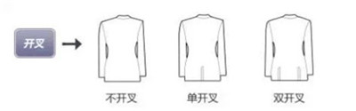 從款式上來講,還有一個開氣的問題,開氣我們一般叫開衩。兩側開衩叫騎馬衩,騎馬的時候比較方便,這是英版西裝的特點,還有一種衩是中間衩,中間開衩。騎馬衩,實際上和英國人的馬術運動有關。騎馬時這個西裝如果大小不協調,或者不注意的話,一下子就壓到屁股下面去了,所以他上去一撩,西裝就能夠搭配馬的兩側。