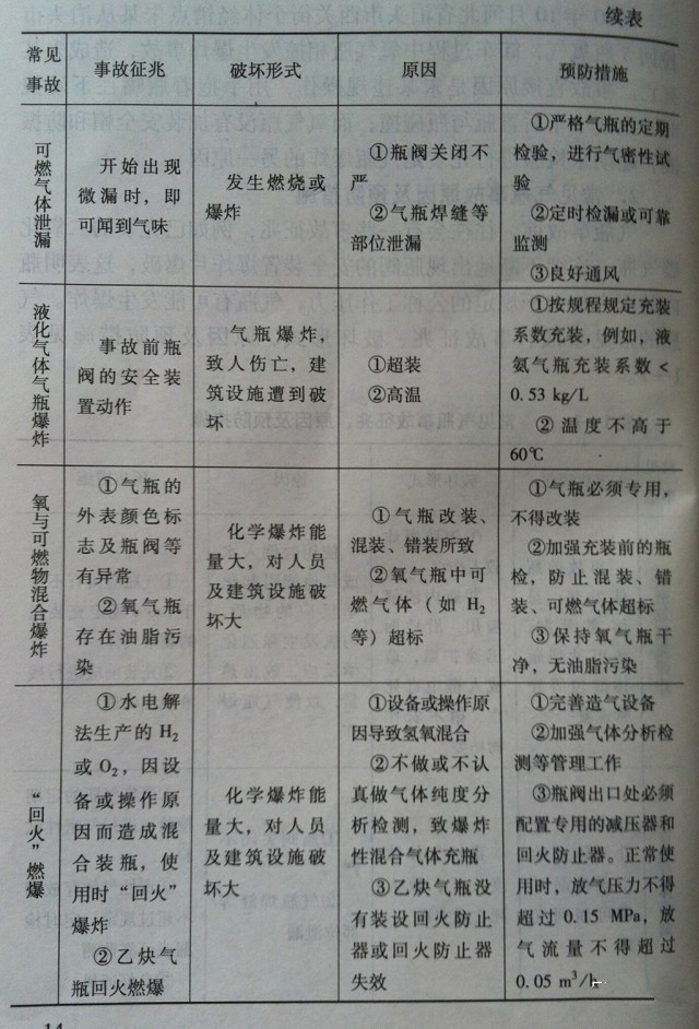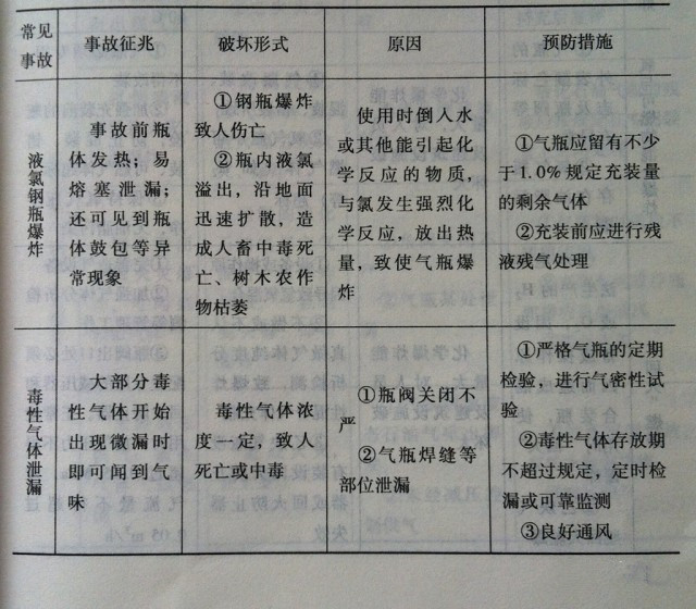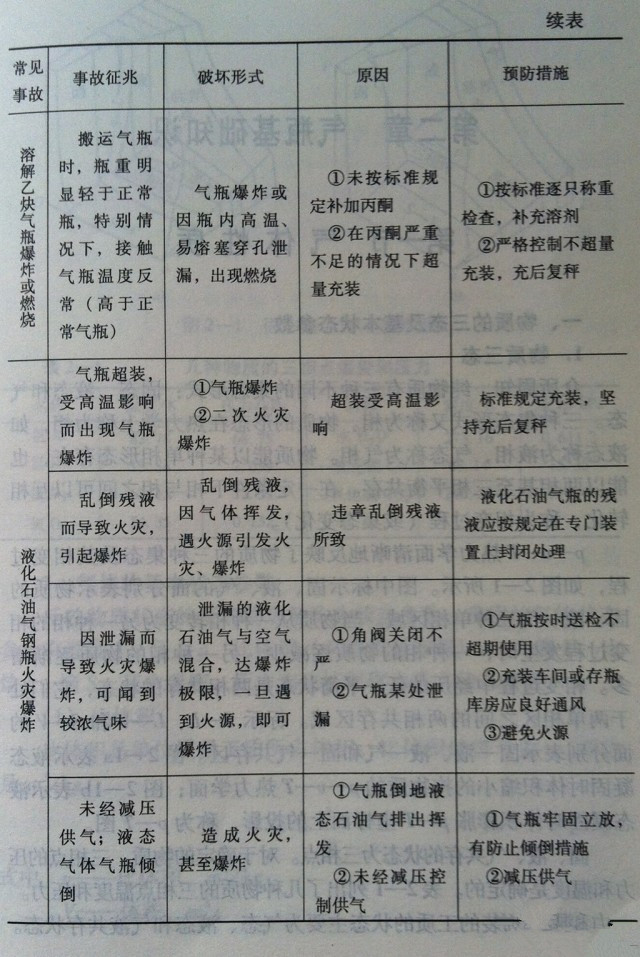 常見氣瓶事故征兆、破壞形式、原因及預防措施一覽表