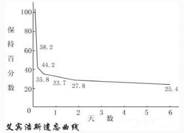 德國心理學家赫爾曼·艾賓浩斯(Hermann Ebbinghaus)研究發現,遺忘在學習之后立即開始,而且遺忘的進程并不是均勻的。最初遺忘速度很快,以后逐漸緩慢。他認為"保持和遺忘是時間的函數",并根據他的實驗結果繪成描述遺忘進程的曲線,即著名的艾賓浩斯記憶遺忘曲線。