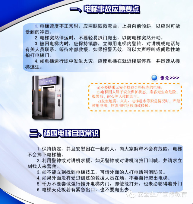 電梯作為高層建筑一種垂直交通工具,與人們的生活工作密切相關。升降運行看似簡單,一旦出現故障,可能會發生乘客被困、墜落等危險事故。了解電梯遇險應急知識,關鍵時刻保護生命安全。