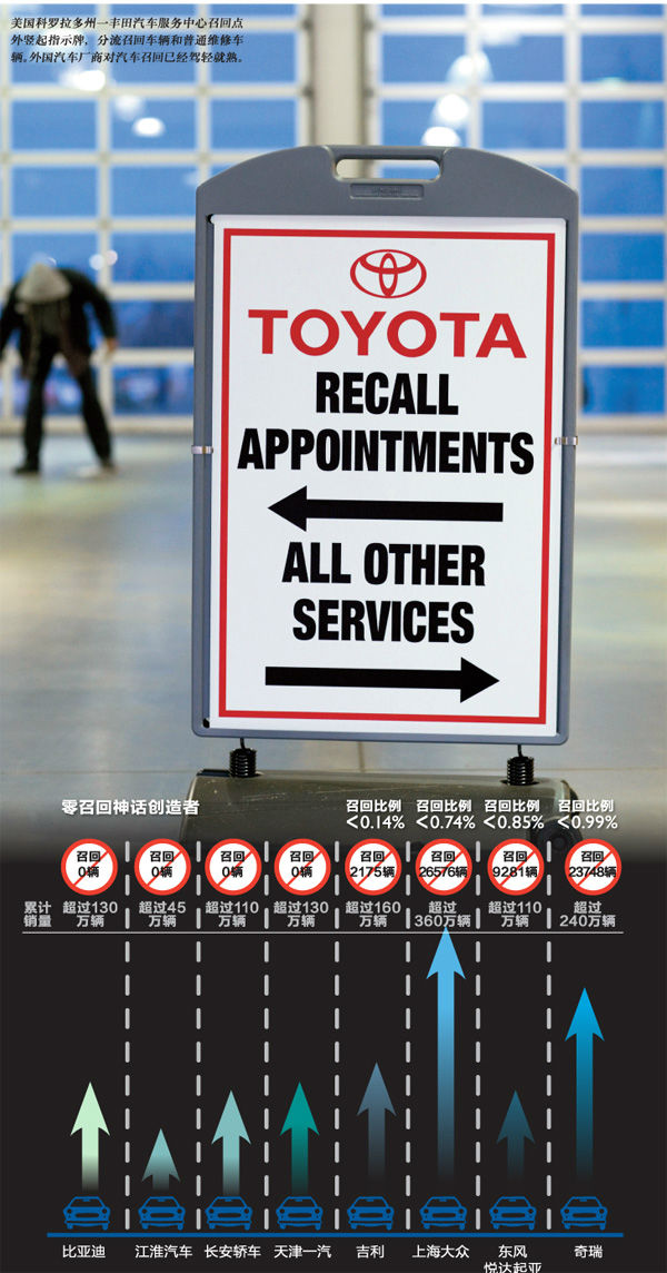 2010年,中國汽車全年銷量達1806萬輛,繼2009年銷量首次超過美國后,已連續兩年位居全球第一。伴隨中國市場的火熱,汽車也從以往身份地位象征的奢侈品逐漸變為進入尋常百姓家的生活必需品,在這個演變的過程中,也有一個外來名詞日漸被國人所熟悉,那就是“汽車召回”。