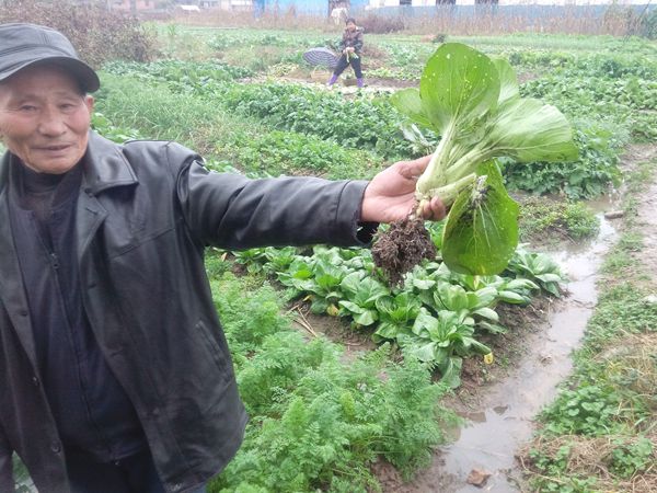 采訪中,一名姓劉的村民帶著記者到菜地,并拔了一顆青菜。他指著上面黑色狀的物質告訴記者:“地里的青菜,都有一層黑色粉塵,而這些粉塵是附近大米加工廠排放的。”