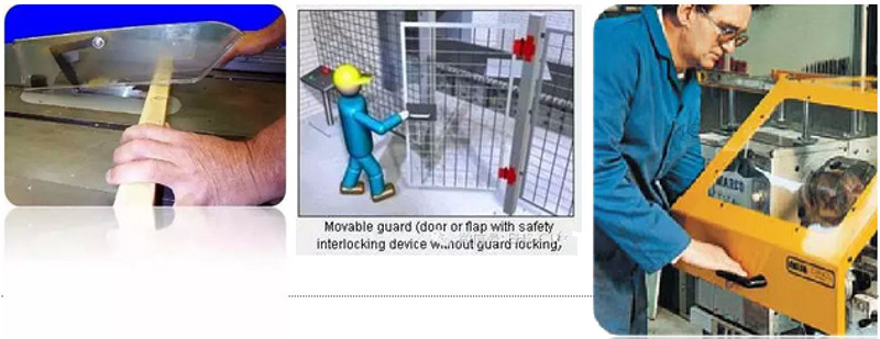 防護裝置有單獨使用的防護裝置(只有當防護裝置處于關閉狀態才能起防護作用);和與連鎖裝置聯合使用的防護裝置(無論防護裝置處于任何狀態都能起到防護作用)。