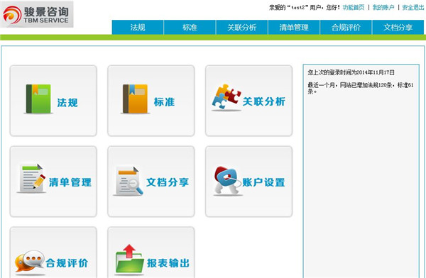 駿景咨詢自從2014年6月推出EHS法律法規在線合規性評價專業版,受了許多企業和EHS經理的好評,目前還有10個名額,現在申請在線法律法規合規性評價自助系統只要2880元,2015年1月1日后,即將恢復為原價:16000元/家企業!敬請垂詢!