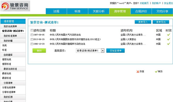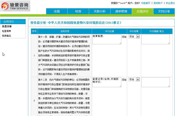 合規性評價,每一個法規的每一條您都可以勾選入庫,近期更新的法規我們正在每一條每一條的輸入系統,請稍等片刻,或直接反饋聯系,我們將在第一時間解決您的問題